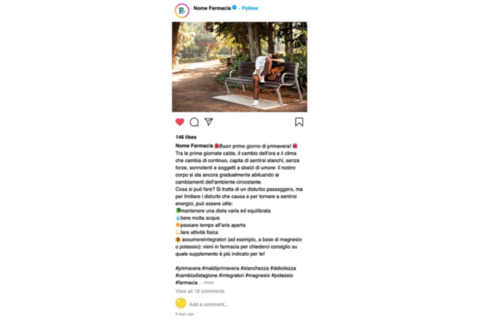 - invitare i propri follower a recarsi in farmacia e acquistare prodotti o usufruire di servizi